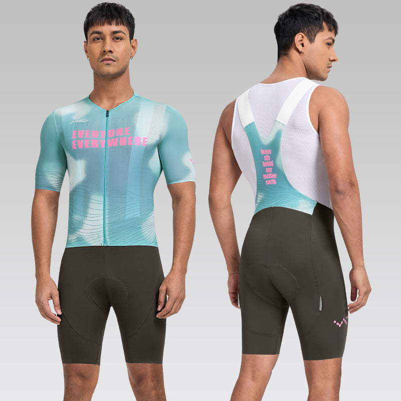 Santic Galek Men's Set is crafted from premium polyester and spandex, offering both exceptional comfort and durability. Each panel is individually printed, precision-cut, and expertly sewn to deliver flawless graphics. The integrated DOLIMITI 100m³ 3D pad provides optimal support and breathability, keeping you focused on the road or trail ahead.