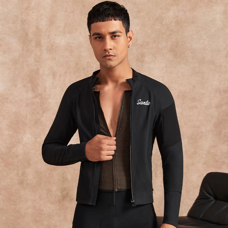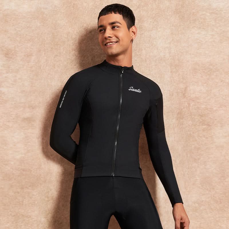 This Santic Mochen Men's Fall Jersey is designed for fall and winter rides, providing windproof warmth in -2°C to 8°C weather. Advanced moisture-wicking technology keeps you dry and comfortable. A YKK quick-release zipper on the chest allows easy one-handed use, while the dual-layer design fits snugly for added warmth. The 4.5cm anti-slip band at the waist ensures stability, preventing shifting during rides. Reflective strips on the back enhance nighttime safety, and three standard rear pockets plus a mesh pocket offer convenient storage for essentials.