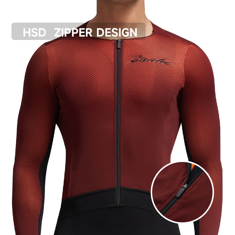 Santic QanHu Men's Winter Cycling Jacket is design for spring and autumn rides, this performance jersey combines aesthetics and functionality. The lightweight, high-elastic fabric wicks moisture while keeping you dry and comfortable. Its 3D tailored fit ensures a perfect, unrestricted ride. Featuring premium HSD zippers and glossy silicone-printed logos, it blends style with durability. Anti-slip grippers on the hems maintain position during rides, while three rear pockets provide convenient storage for essentials. Reflective accents on the arms and back enhance safety during nighttime cycling. Elevate your cycling experience with unparalleled comfort and reliability!