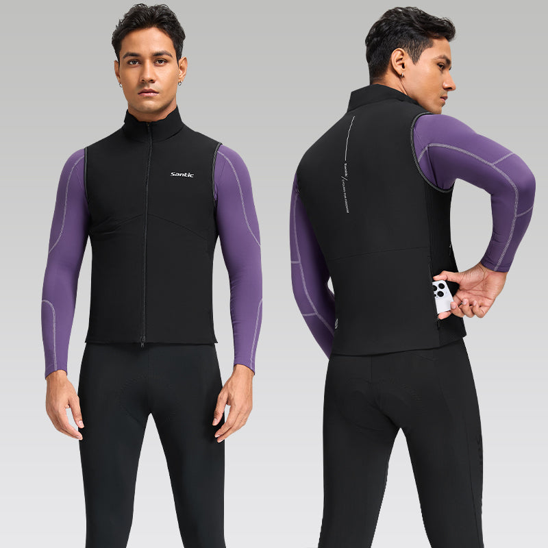 Santic 37.5 Yian Windproof Gilet Using NASA-inspired 37.5® technology, it regulates body temperature and evaporates sweat fast, keeping you comfortable in changing weather. The fabric is 32% warmer than fleece yet remains breathable, with antibacterial properties to stay fresh on long rides. A YKK double zipper makes it easy to adjust airflow, while multiple pockets give space for ride essentials. Reflective details ensure safety in low light. Perfect for beginners who want lightweight protection and pro-level comfort on every ride.