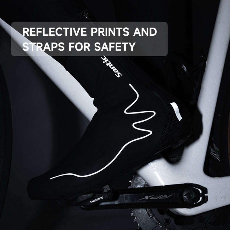 Santic Szell Windproof Cycling Shoes Covers is crafted for autumn and winter cycling, these shoe covers shield your feet from cold winds , ensuring maximum warmth on every ride. Featuring a premium 80% nylon and 20% spandex material and waterproof zipper, they provide double-layer protection while maintaining durability. With an easy-to-use zipper design, putting them on and taking them off is effortless. Reflective prints and straps enhance visibility during nighttime rides, ensuring added safety.