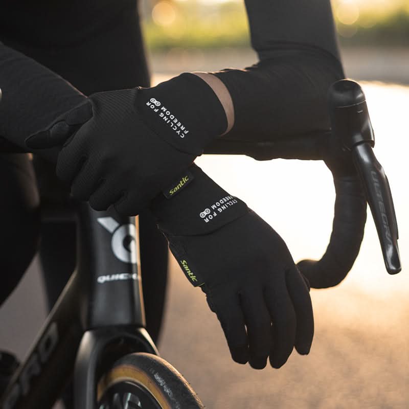 The Santic Muni Windproof Gloves feature the new Performance cushioning system, a breathable and abrasion-resistant palm, and lightweight poly-spandex fabric. They are moisture-wicking and stretchy, making them ideal for road and mountain biking in temperatures between 20-28°C. The fingertips on the thumb and index finger are touchscreen compatible for easy use of devices. The lightweight design reduces hand fatigue, making these gloves a great choice for cycling enthusiasts.