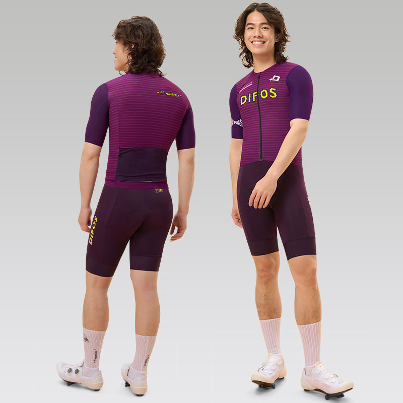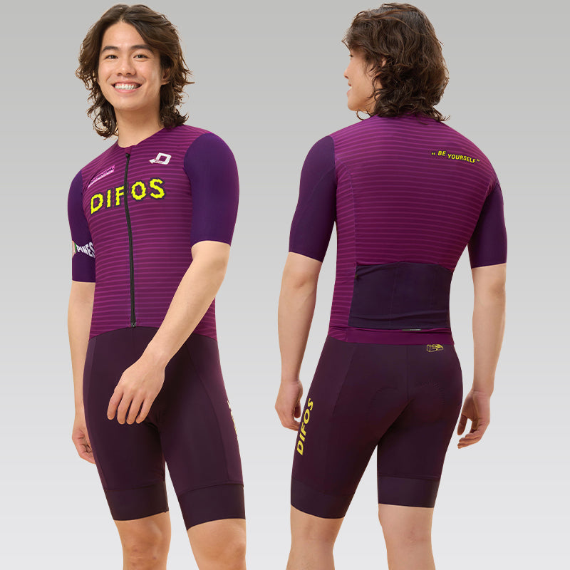 Difos Keene Unisex Jersey blends collegiate charm with modern performance. Featuring a bold pixelated “DIFOS” logo and slogan graphics like “BE YOURSELF” and “POTENTIAL,” it channels youthful energy and team spirit. The striped pattern and rich purple tones create a vibrant, fashion-forward look that stands out on the road. Made from breathable, stretch-performance fabric, it ensures a close fit and maximum comfort during intense rides. With functional rear pockets for storage and a full-length zipper for ventilation, this jersey combines expressive style with cycling practicality—perfect for riders who want a sporty, upbeat look without compromising performance
